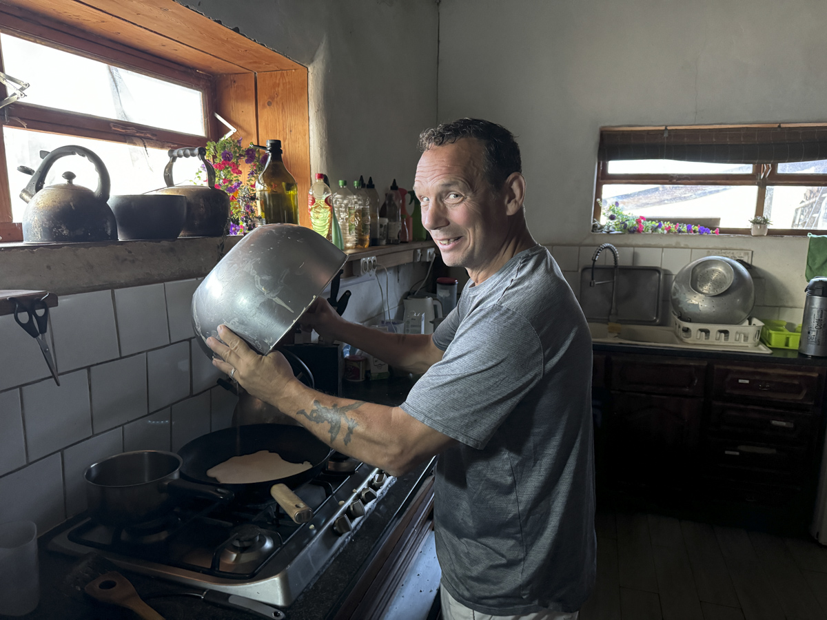 Randy also added “sheep wrangler” to his resumé. A ewe had a miscarriage shortly before we arrived and needed treatment. She had to be gently taken down to apply medication, and Randy—with his farm-hand energy—was the right man for the job.